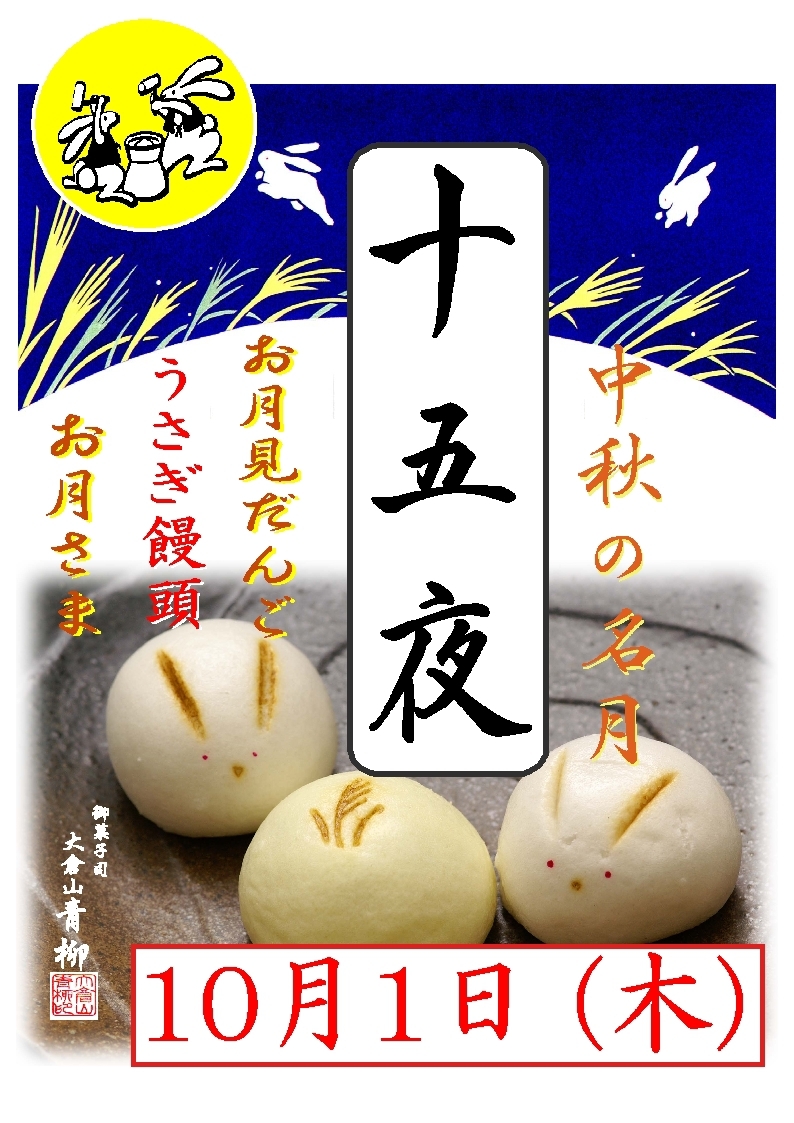 10月1日(木)【中秋の名月・十五夜】お月見だんご・うさぎ饅頭など