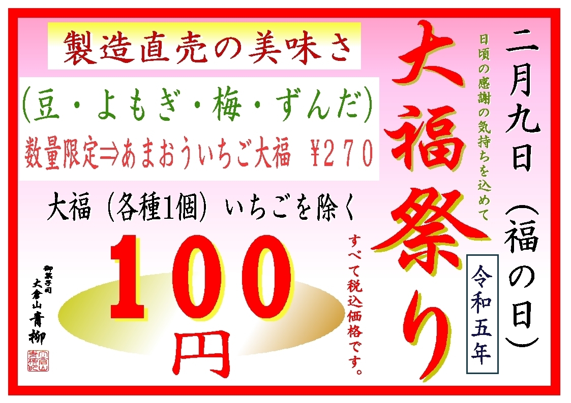 2/3 節分(お多福まんじゅう、節分御上生菓子、鬼打ち豆(北海道産袖振り豆)