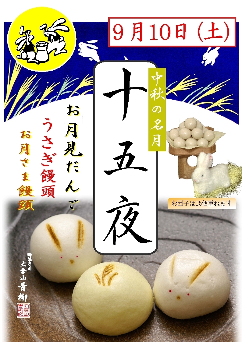 9/10(土)中秋の名月「十五夜」作りたての「お月見団子、うさぎ饅頭」など